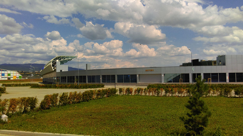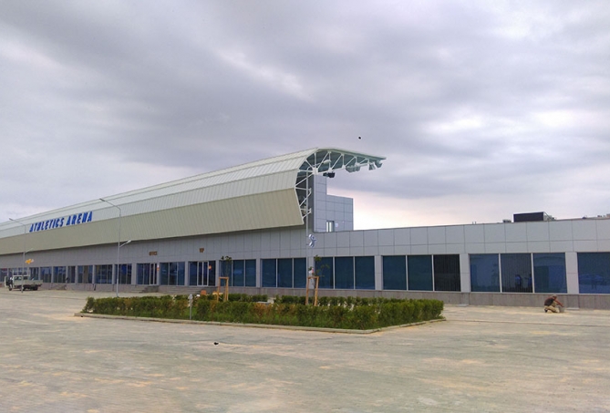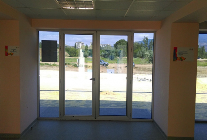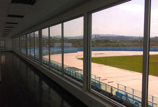მძლეოსნობის სტადიონი დიღომშიფასადის შემინვა ალუმინის თერმოპროფილის ვიტრაჟებით და ფასადის მოპირკეთება ალუმინის კომპოზიტური პანელებით